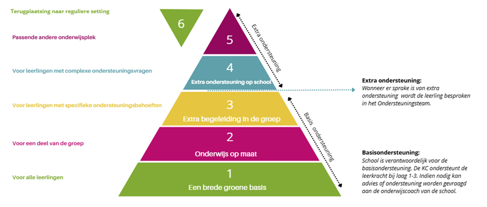 Vanuit het handelingsgericht werken stemmen we ons onderwijs af op wat leerlingen nodig hebben. We maken daarbij gebruik van het 6-lagenmodel van ondersteuning, dat helpt om de begeleiding goed te organiseren en passend te maken voor iedere leerling. Wil je meer te weten komen hoe de Kingschool het 6-lagenmodel van ondersteuning concreet inzet? Klik dan op de onderstaande afbeelding.